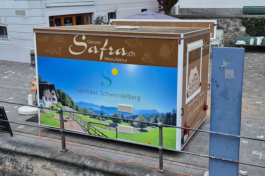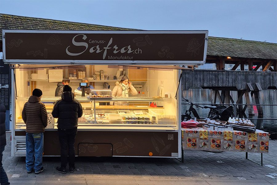 Unser Määrtstand in Luzern an der Reuss auf der Altstadtseite